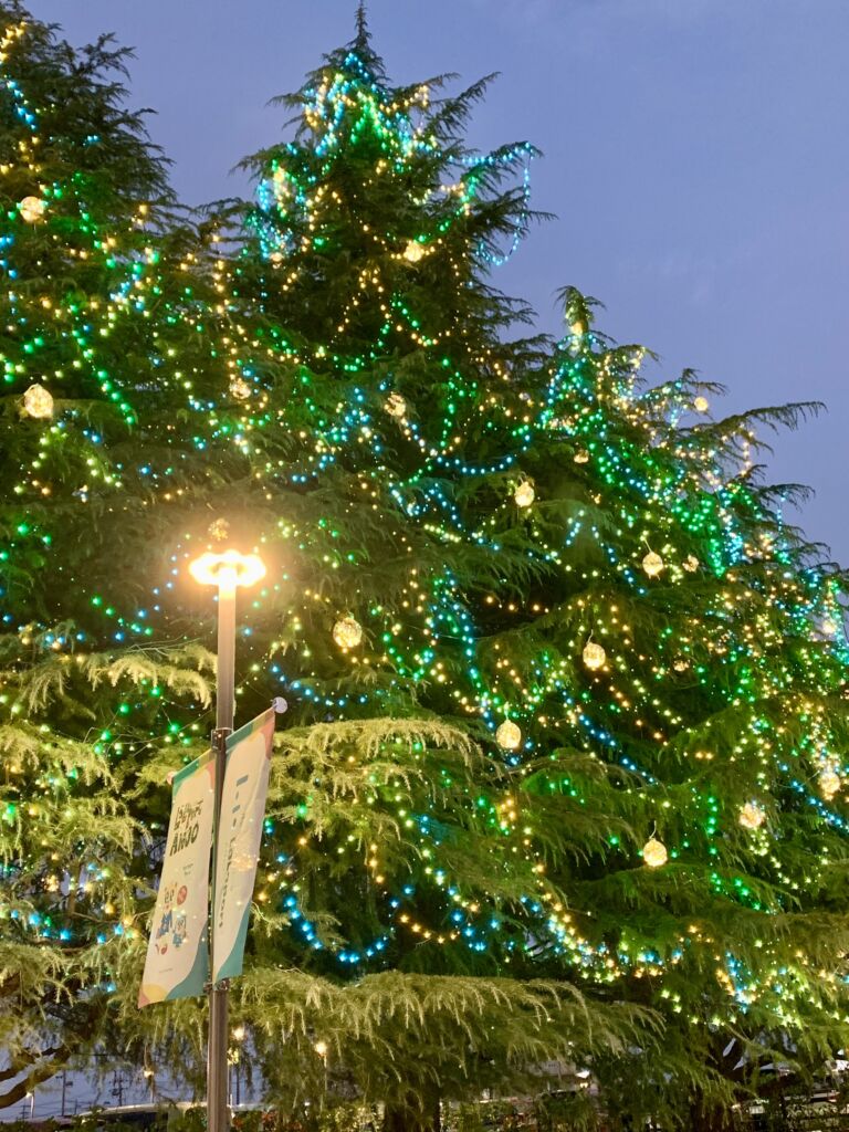 先日、安城市の「ららぽーと」に立ち寄ったところ、敷地内にある大きな木がまるごとイルミネーションで飾られていて、とても素敵でした。自然の巨木が光に包まれている姿は迫力がありました。これほどの高木は、飾りつけにクレーン車なども使われたのでしょうね。とっても素敵なイルミネーションだったので、たくさん写真を撮りました☆